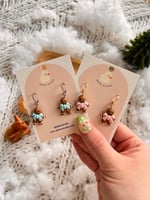 • Huggie hardware, gold plated for pink and stainless steel for blue