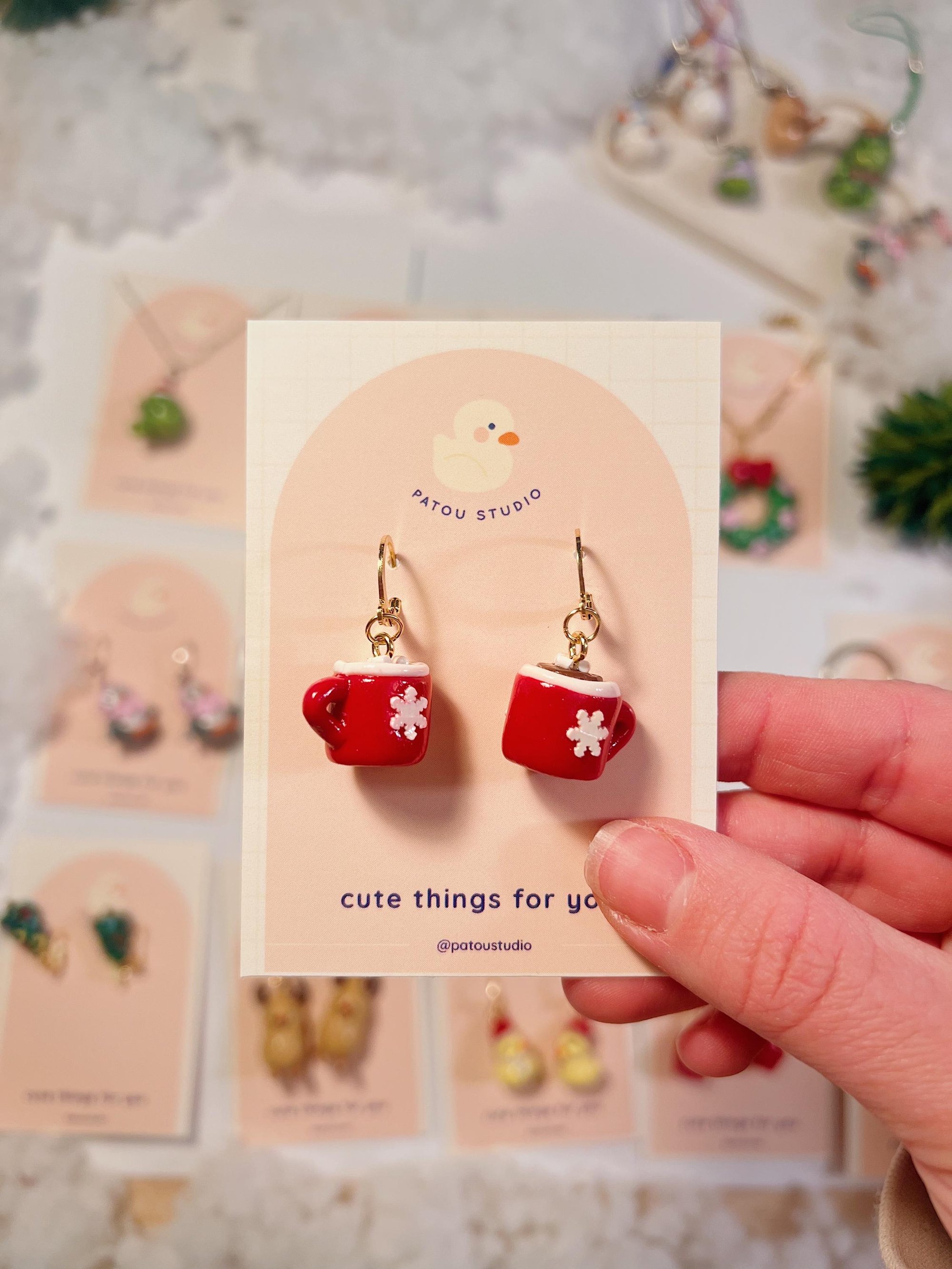 Winter miniature dangle earrings - tiny food, christmas tree, cozy animals