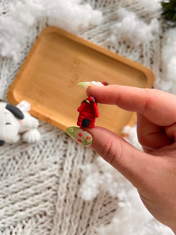 Inspired by the iconic Peanuts scene, with Snoopy house decorated for Christmas.