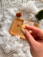 Crafted with polymer clay, and gold plated stainless steel hardware.